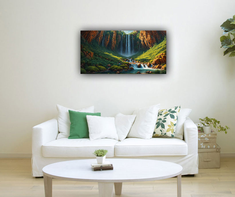 Waterfall paintings capture the dynamic flow of water, symbolizing abundance and prosperity. In Vastu and Feng Shui, they're prized for attracting wealth. Placing them in specific directions harnesses their positive energy, inviting financial success.