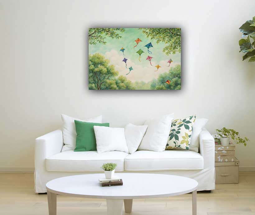 The East is connected with the Air element and signifies new beginnings, growth, and creativity. Placing an artwork or symbol of Flying Kites in the East direction invites fresh energy, supports mental clarity, and enhances communication and intellectual pursuits.