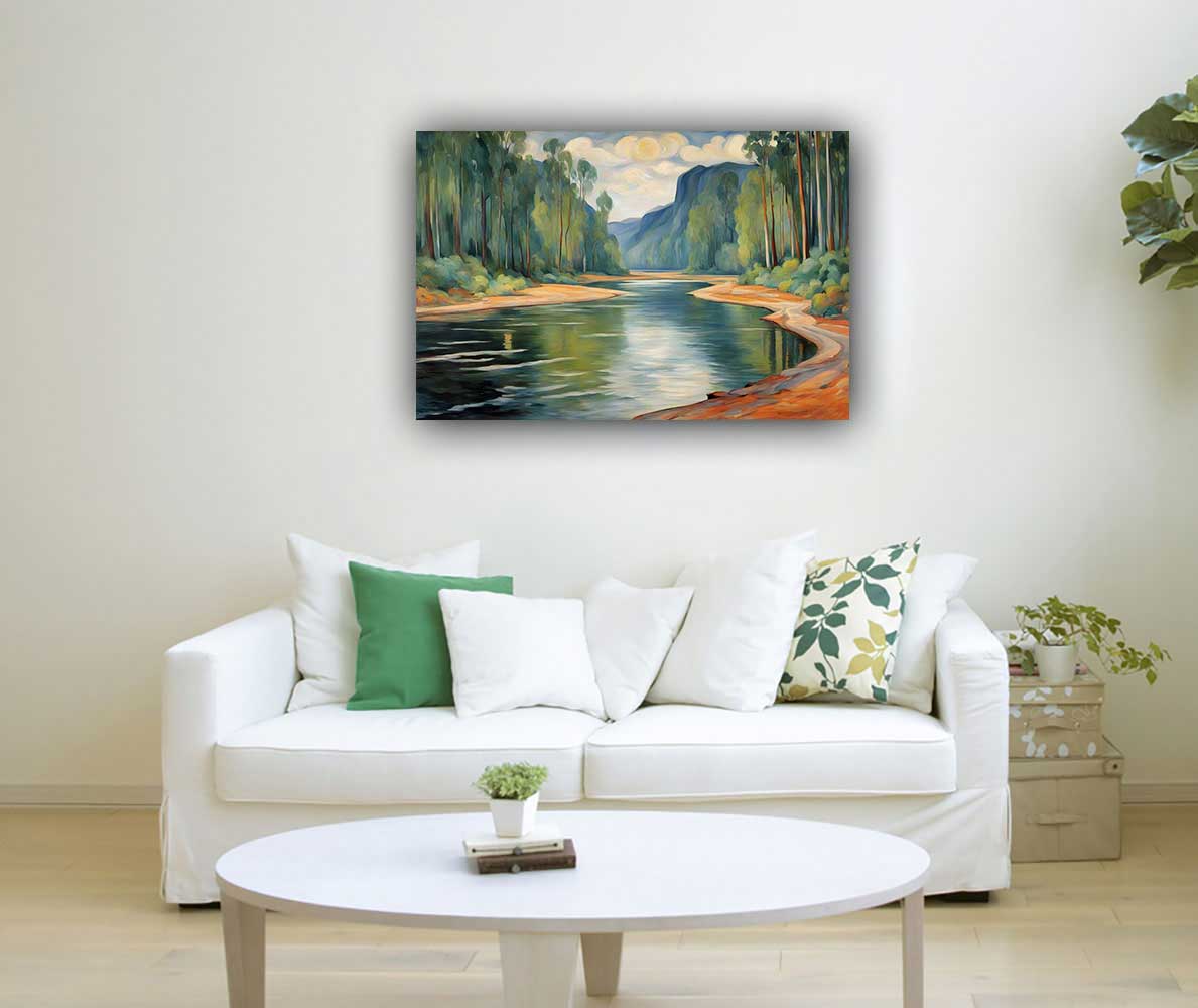 According to Vastu, water elements like rivers symbolize wealth and purification. Placing a river painting in your home or office can invite positive energy and financial growth. Here’s why river paintings are important: