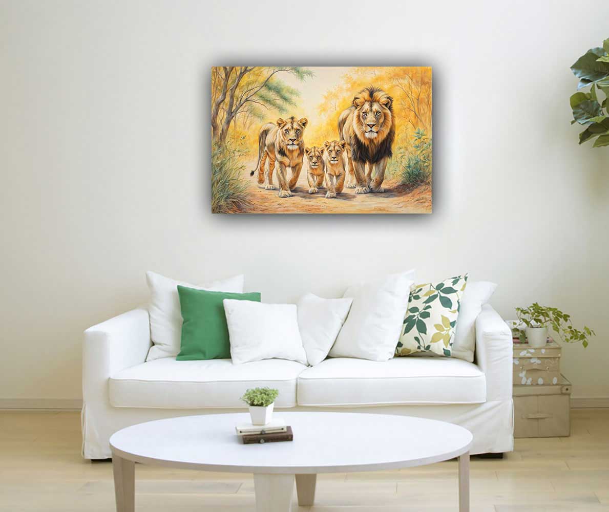 Family of Lion Painting – Strength, Unity & Protection The Family of Lion Painting symbolizes strength, unity, and protection, perfect for homes valuing family bonds and leadership. To enhance family relationships and stability, place this artwork in the Southwest direction as per Vastu. It invites harmony and security into your space, making it an ideal choice for promoting togetherness.