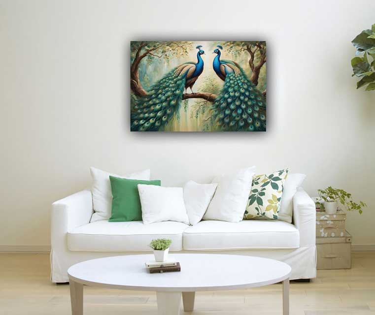 A Peacock Painting is a powerful Vastu element, revered for its ability to enhance the flow of positive energy and bring harmony to your space. Known for its captivating beauty and deep symbolic meaning, the peacock represents wisdom, good fortune, and prosperity in Vastu Shastra.