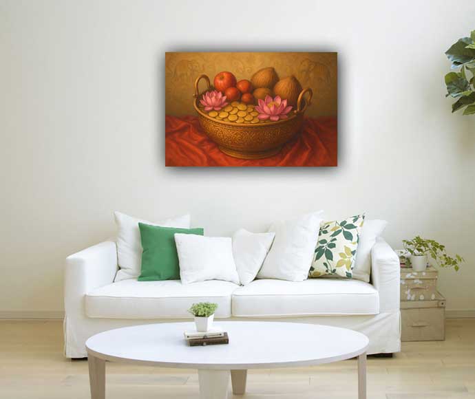 Prosperity Vastu Artwork Overflowing Fruits & Flowers Basket