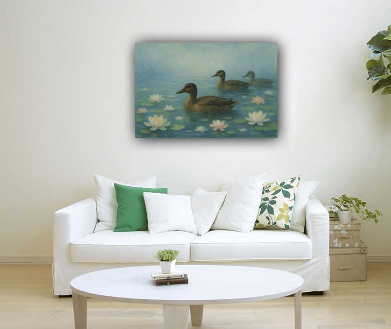 Vastu duck painting for Northeast direction – modern wall art on premium canvas for peace and balance.