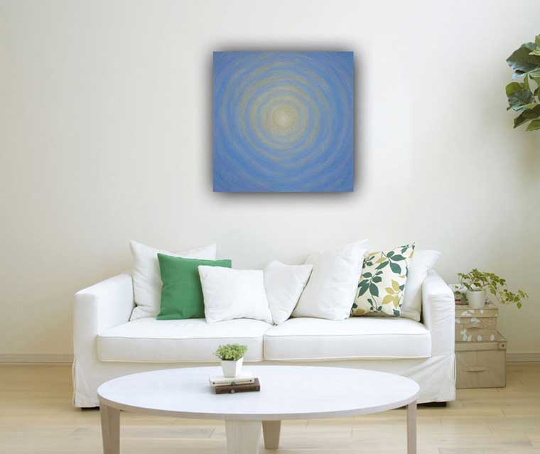 Radiant Light Energy Wall Art features soft concentric waves of calming blue tones radiating from a luminous center. The expanding circular flow represents positive vibrations, higher awareness, and balanced energy.In Vastu Shastra, the Northeast (Ishan corner) governs wisdom, clarity, and spiritual growth. A painting with light radiating outward enhances subtle positive energy and promotes mental focus in this sacred direction.