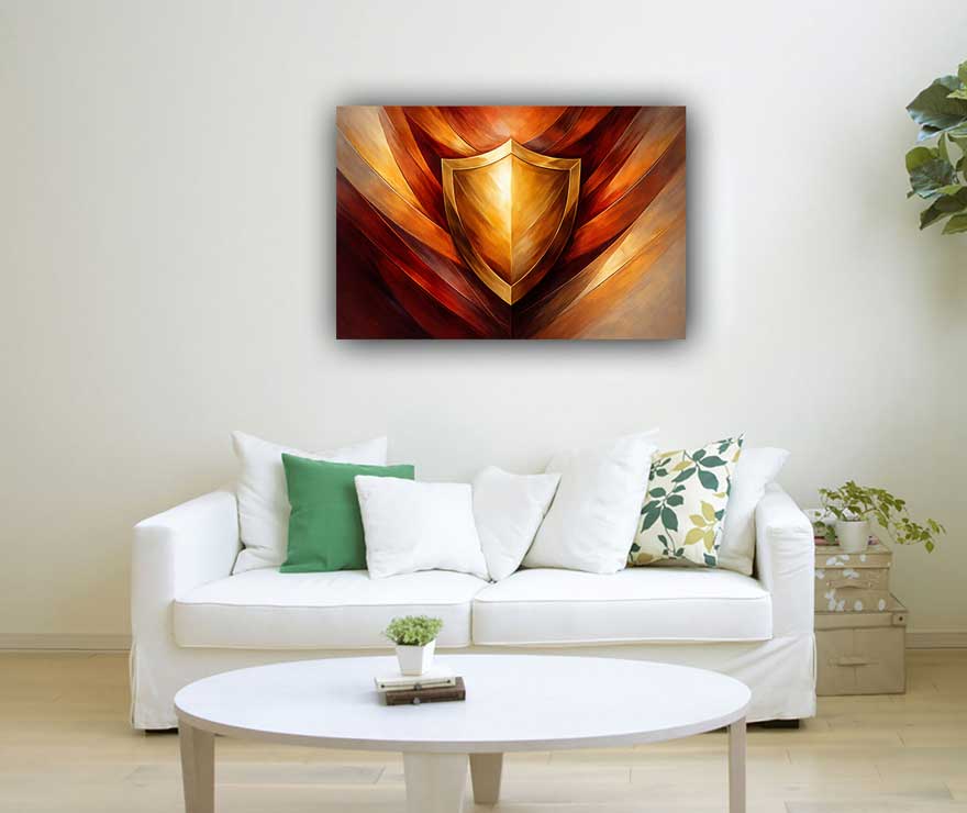 Designed as premium canvas wall art, the painting highlights the shield as a symbol of security, determination, and inner strength. The golden tone represents prestige, power, and enduring confidence, making this artwork ideal for environments where authority and stability are valued.